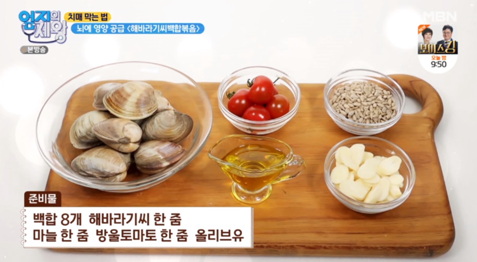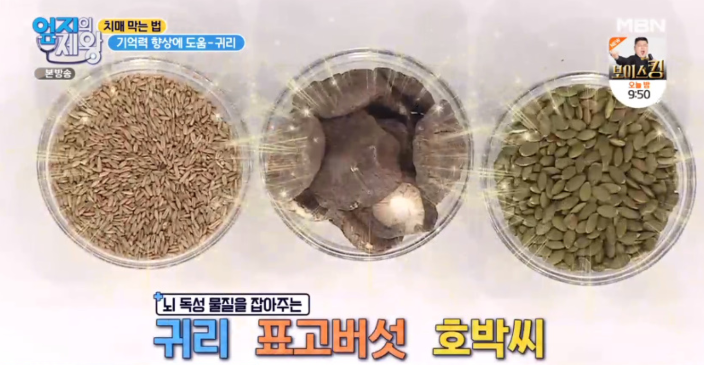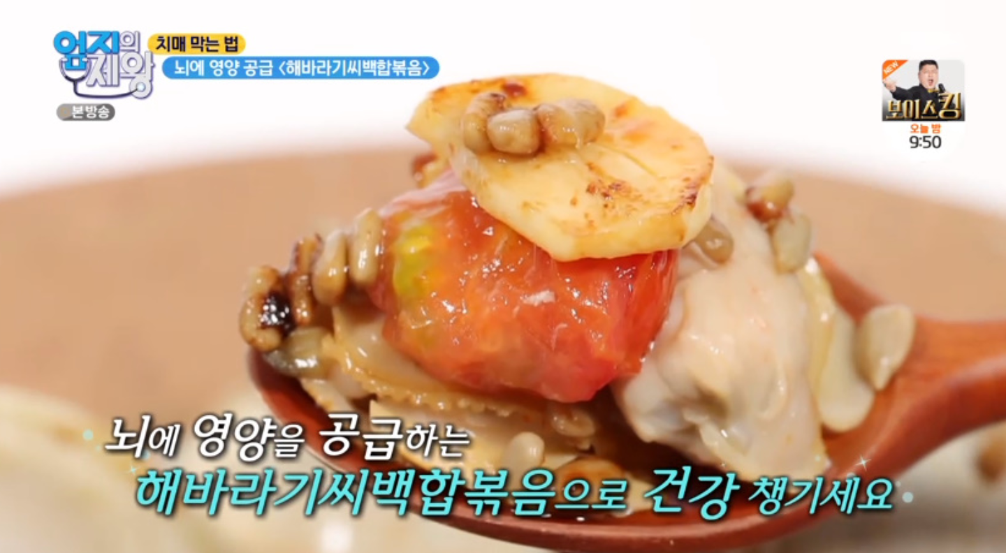 치매막는법 뇌건강에 도움되는 식품 뇌독성물질억제하는 약밥 만들기 뇌영양공급하는 해바라기씨백합볶음 레시피 귀리백합단호박해바라기씨 효능 엄지의제왕431회4월20일방송