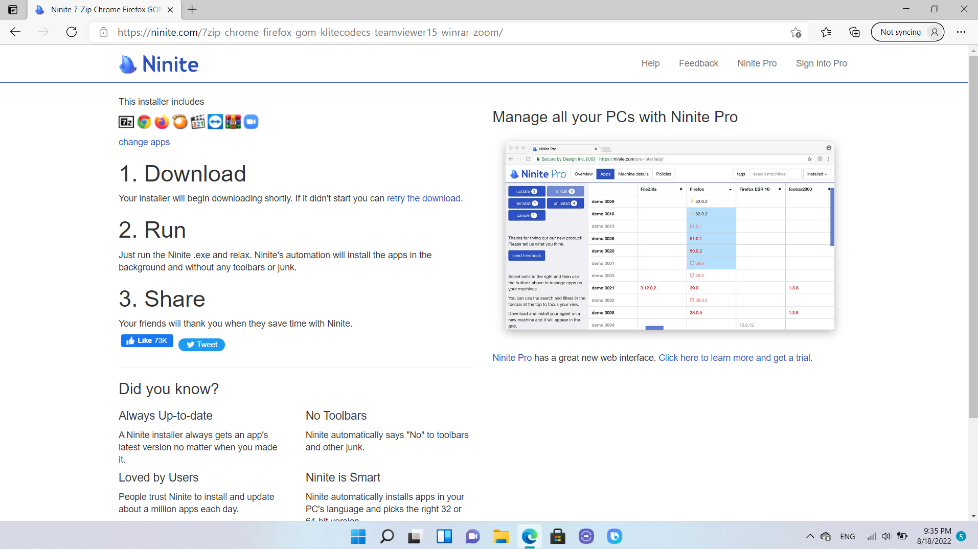 오랫동안 ninite.com을 사용해 왔으며 지금까지 단 한번의 문제도 발생하지 않았습니다.