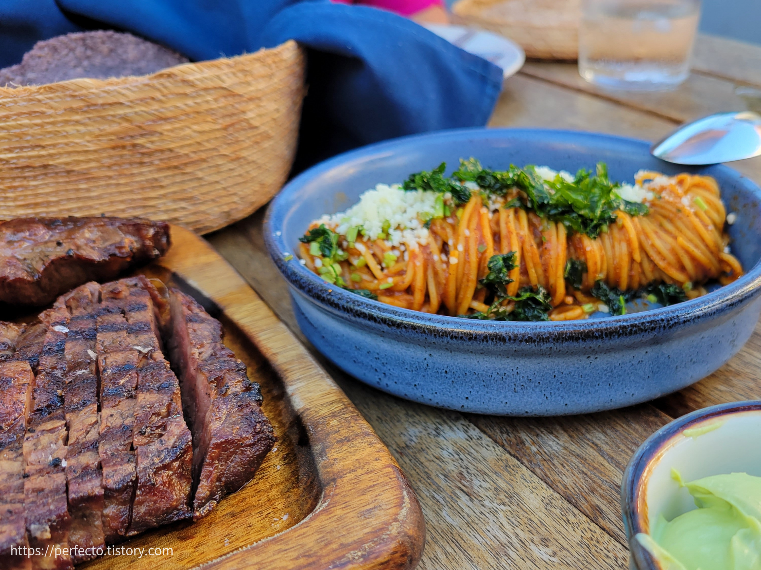 파스타가 그냥 그랬는데, 은근히 매운데 약간 단짠 없이 맵기만 한 비빔국수 느낌이였습니다. 개인적으로는 비추!