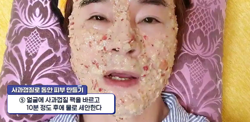 4. 얼굴에 사과껍질팩을 바르고 10분 정도 후에 물로 세안한다.