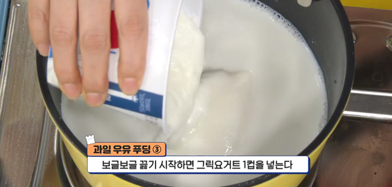 3. 끓기 시작하면 그릭요거트를 넣는다.