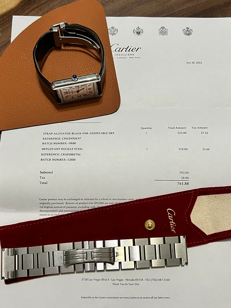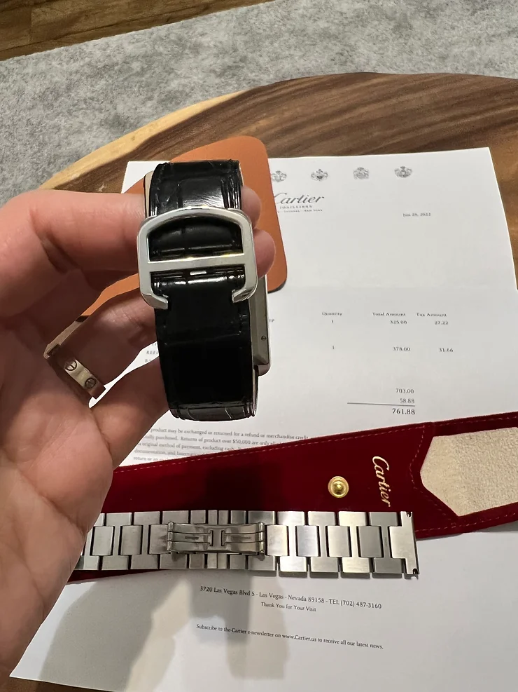 Cartier Tank Solo XL Steel Strap to Alligator Strap with D Buckle 까르띠에 탱크 솔로 엑스라지 스틸 스트랩 디버클 악어가죽줄로 바꾸기 가격 후기