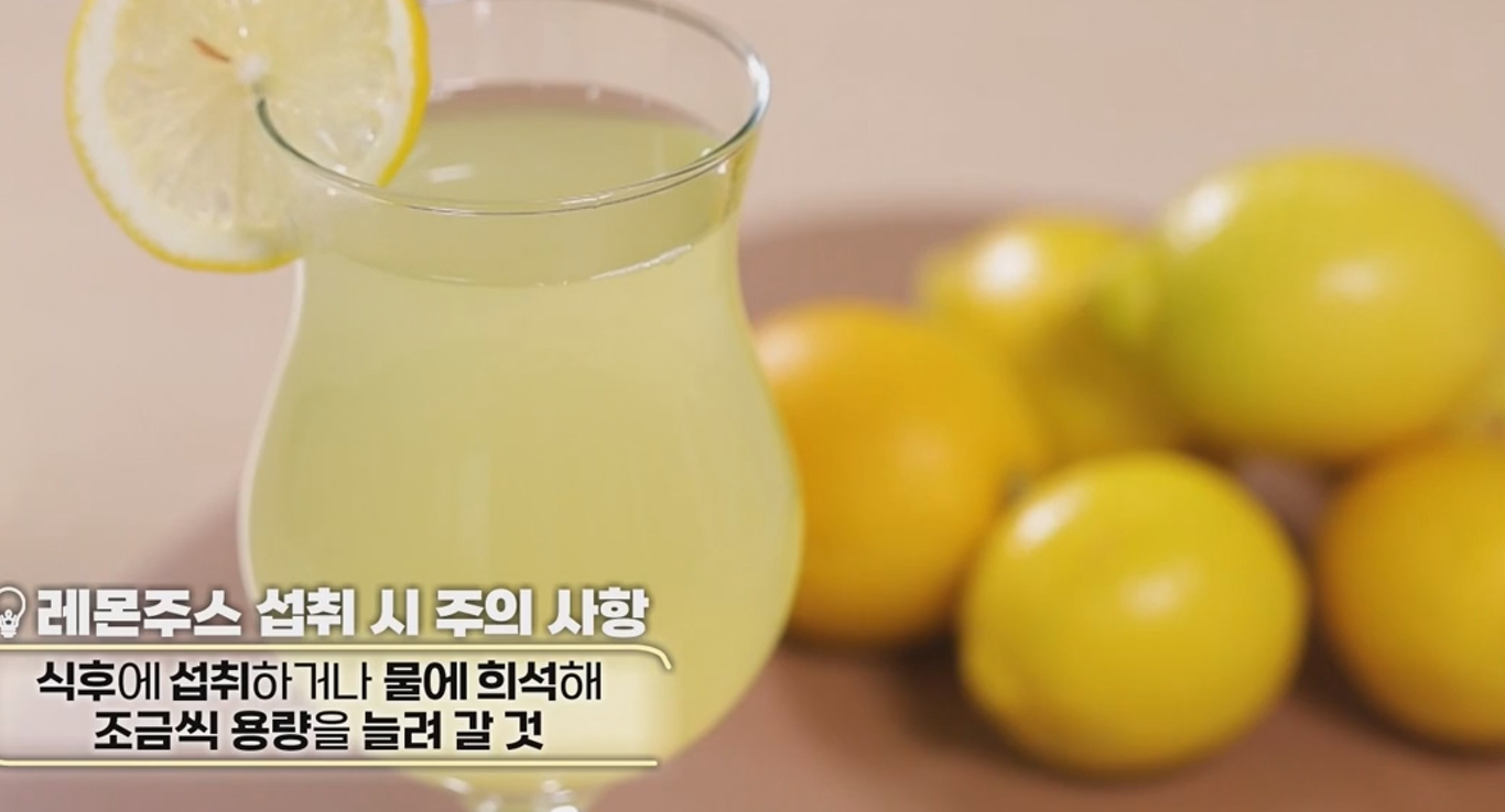 레몬주스는 위장이 좋지 않을 경우 속이 쓰릴 수 있어 식후에 섭취하거나 물에 희석해 조금씩 용량을 늘려가는 것이 좋습니다.