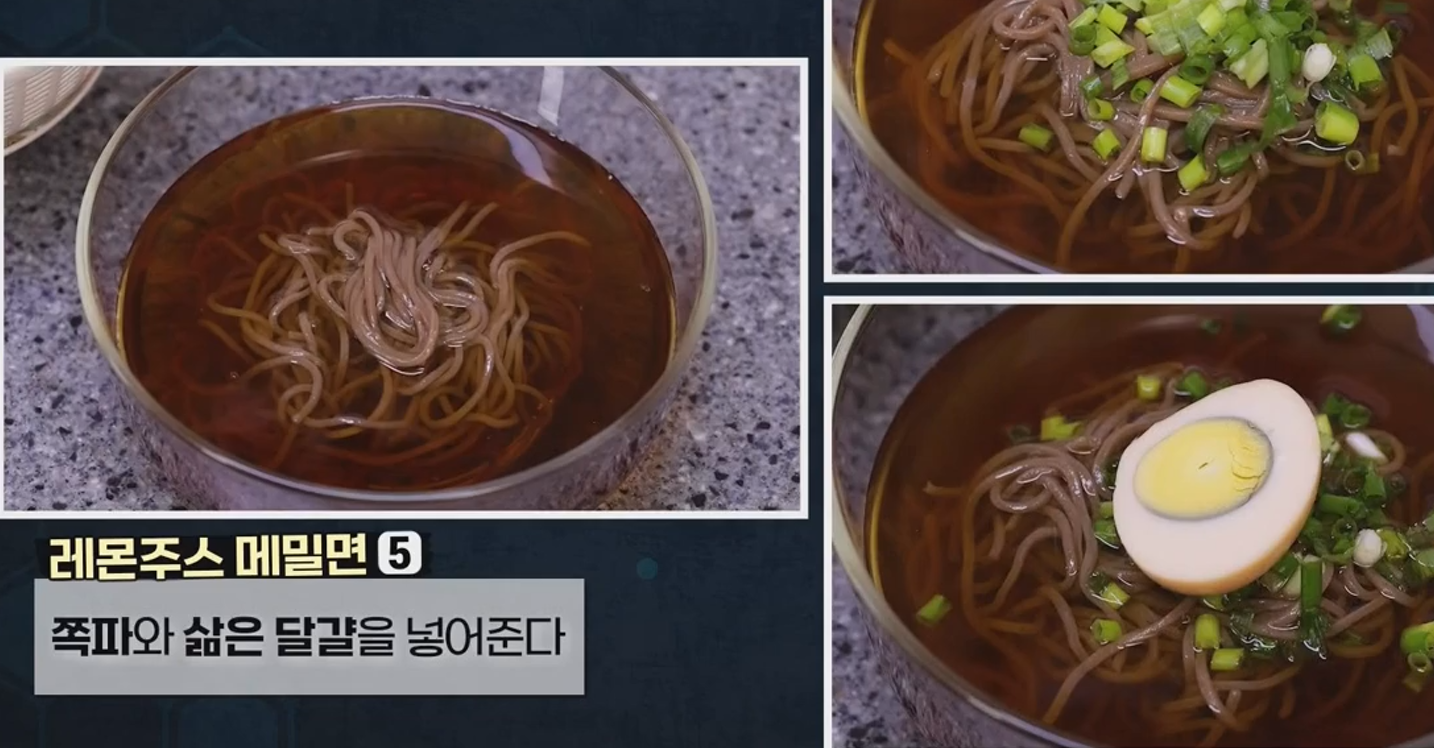 재료 : 레몬주스, 생메밀면, 맛간장(쯔유), 물